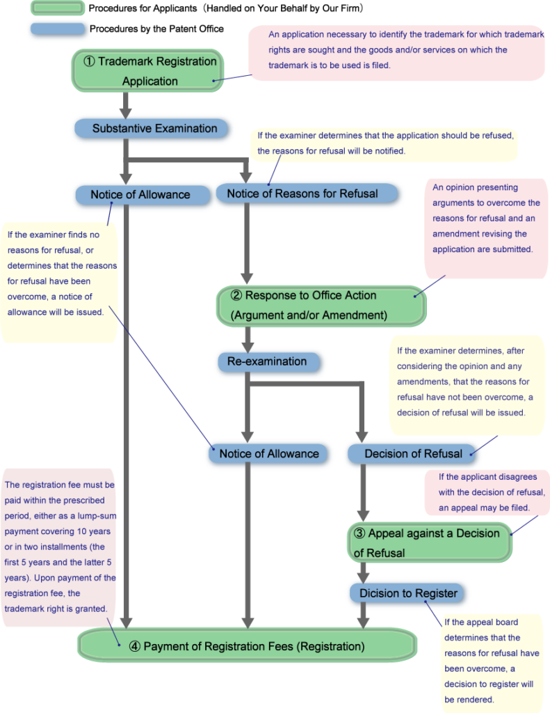 Our firm will handle on your behalf all procedures required of applicants for obtaining trademark rights.